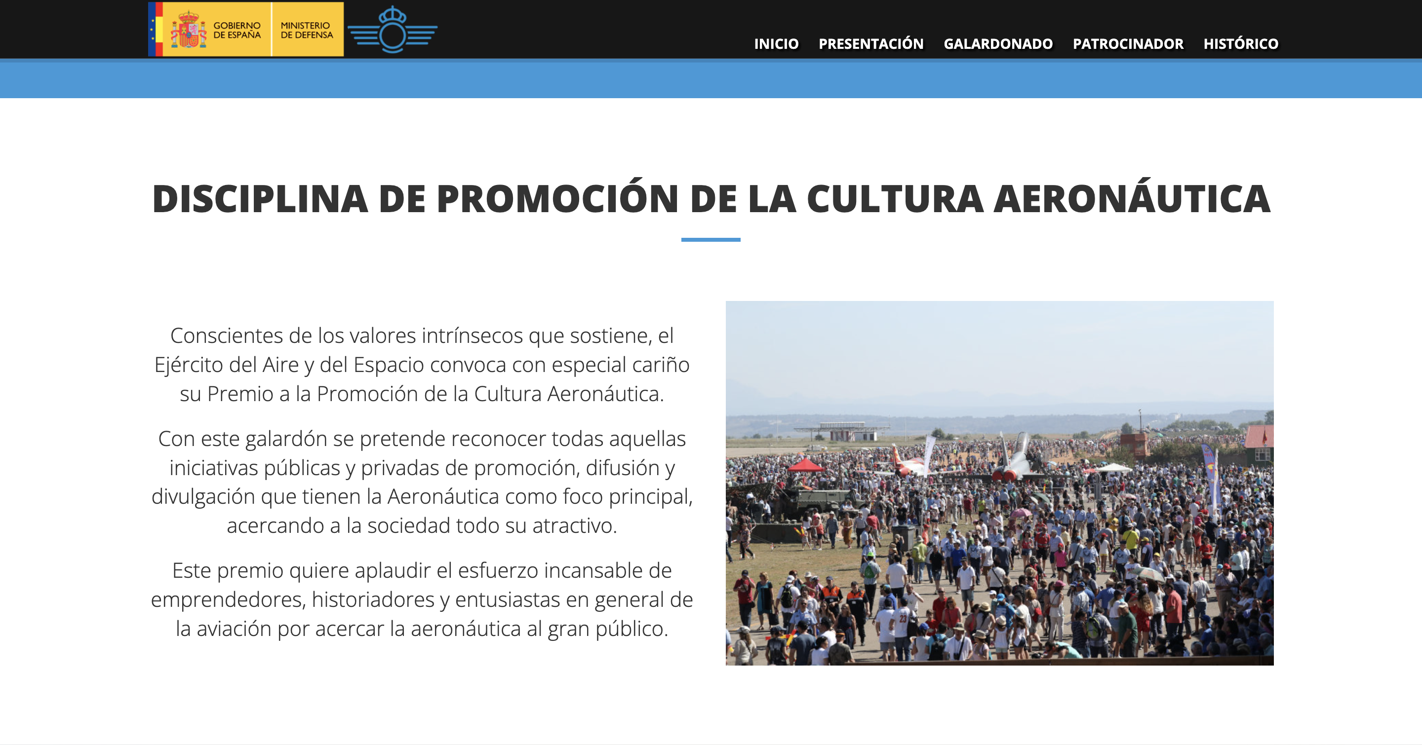 El Galardón va dirigido concretamente a la promoción de la cultura Aeronáutica, y el premio es en la modalidad de Ámbito Social